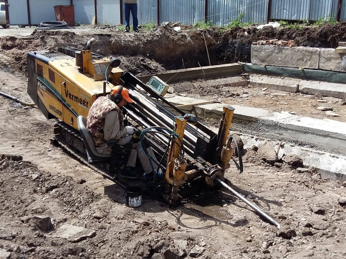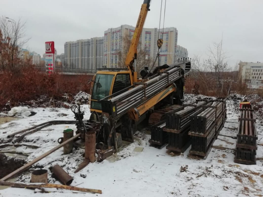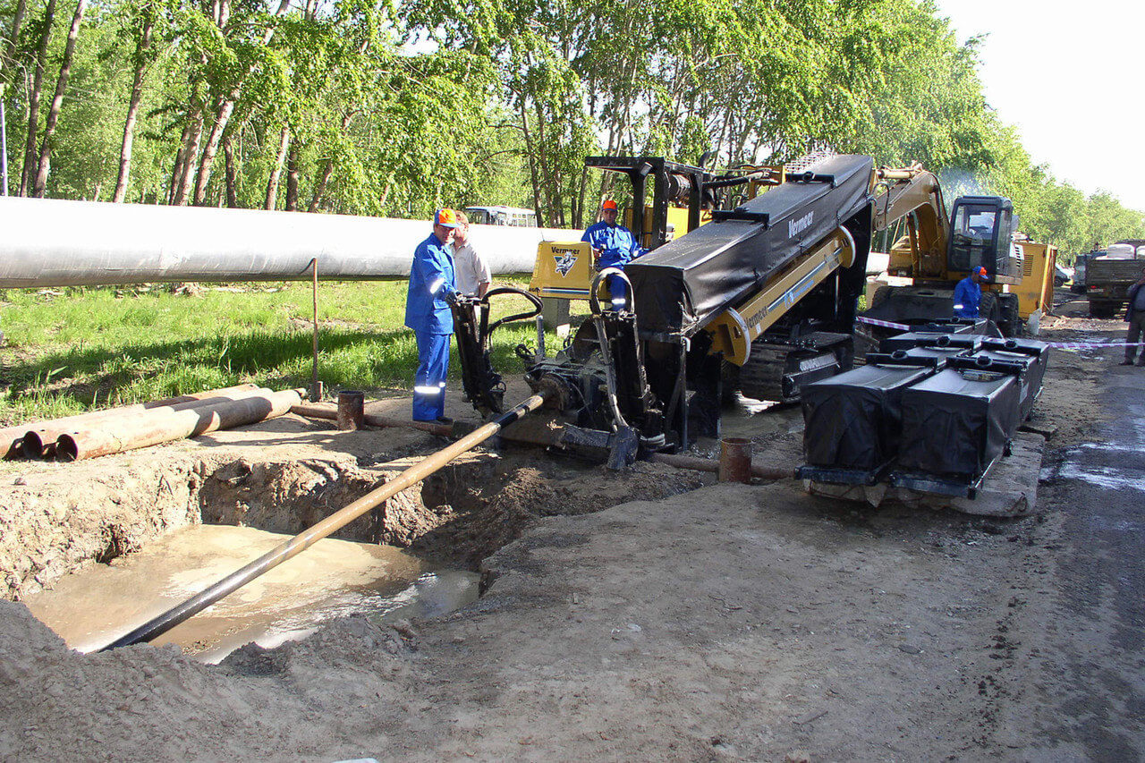 При прокладке теплосетей горизонтальным бурением стоит учитывать огромные преимущества такого метода: сохраняется поверхность с плодородным слоем, минимальный риск повреждения других коммуникаций, небольшие объемы земляных работ, возможность избежать сильного шума и вибраций, значительное сокращение сроков и т.д. Буровые установки, которые используют для данного вида работ, осуществляют прокол грунта в точке входа, а далее бур движется по запланированной проектом траектории под землей, таким образом, все наземные структуры и верхние слои грунта остаются неприкосновенны.